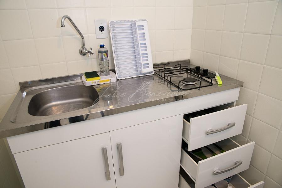 [PRÉDIO FRENTE MAR] Apartamento lateral no Edifício Albany, 42m² privativos, sacada integrada com vista mar, cozinha, sala de estar e jantar, MOBILIADO E EQUIPADO e 01 vaga de garagem privativa.