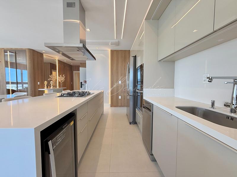 O imóvel conta com living amplo e integrado, ideal para compor ambientes de sala de estar e jantar, além de uma moderna cozinha planejada. Destaque para a sacada gourmet com churrasqueira a carvão, perfeita para reunir amigos e familiares enquanto aprecia uma vista incrível para o mar.