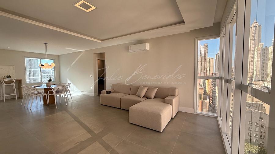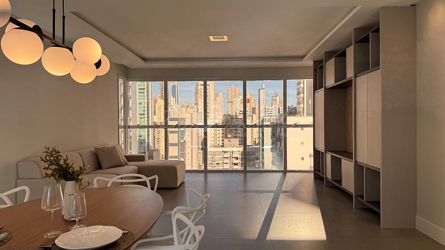 [SEMI MOBILIADO] Apartamento semi mobiliado no edifício Exuberance Residence no centro de Balneário Camboriú-SC. Possui 03 suítes, sacada integrada, churrasqueira carvão, área de serviço separada, aquecimento à gás, piso porcelanato na parte social e vinílico nos dormitórios, cozinha já projetada e equipada, as suítes já possuem armários. 03 Vagas de garagem privativas.